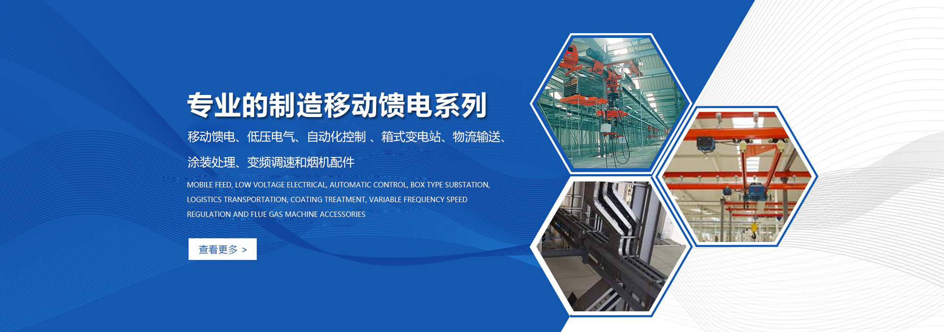 公司依靠科技進步和產品 創新,使產品規模不斷擴大,目前已具有規模生 產能力的主要產品有:移動饋電、低壓電氣、自動化控制 、箱式變電站、 物流輸送、涂裝處理、變頻調速和煙機配件等10大系列100